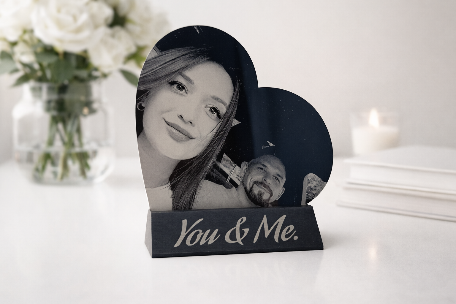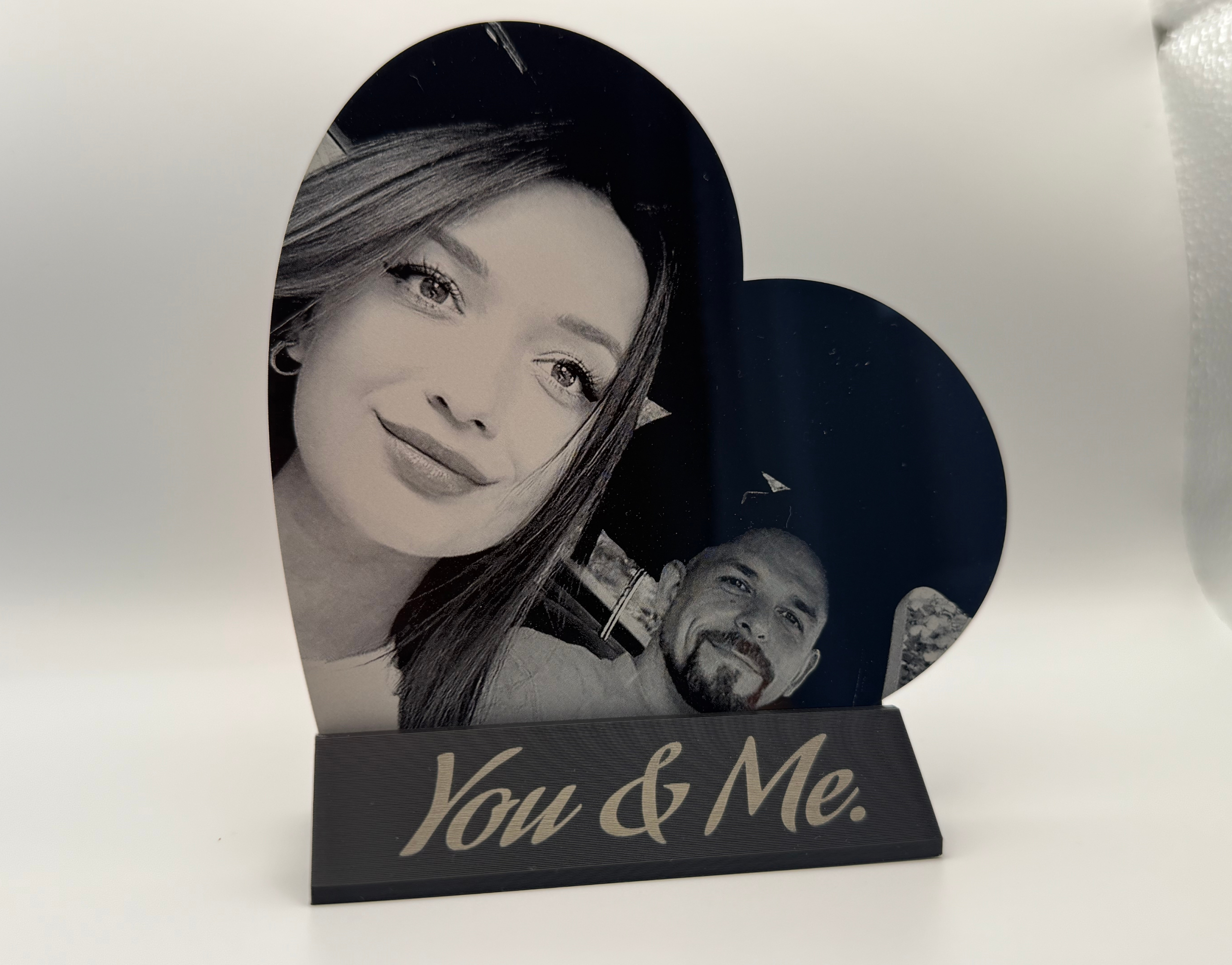 ✔️ Optional engraved text on the stand (e.g. “You & Me.”, “Always.”, “Forever.”)